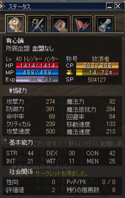 明日で39には乗せたいですが単純に考えて12¥、4時間も狩りかーと思うと気が重い!