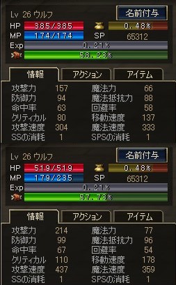 今こんな感じ。上がバフなし下がフルバフのステです。